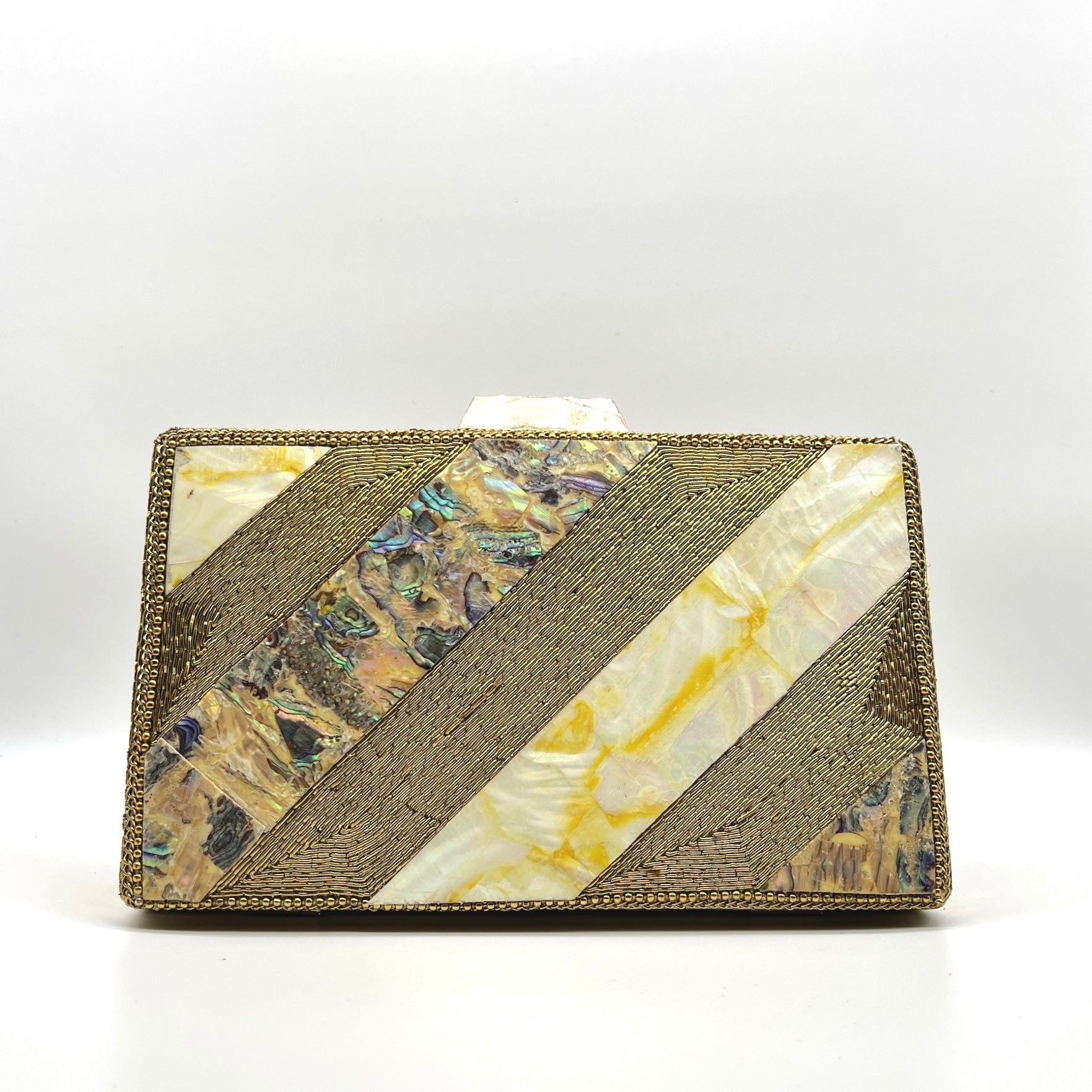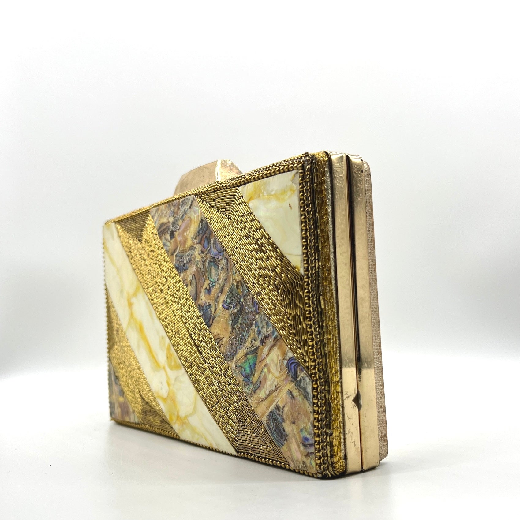 Luxeon, This metal frame clutch boasts exquisite marble - stone work, elevating your style to new heights. Its elegant design and intricate details make it a must-have accessory for any exclusive event. Elevate your fashion game with Luxeon.